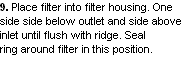 10. Place filter holder and overflow T-Piece through holes at top of filter. Turn to hold down filter and adjust until securely held in position.