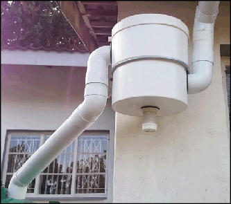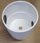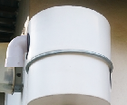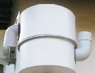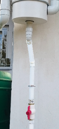 1. Attach mounting ring with the top outlet below the gutter level and above tank height.